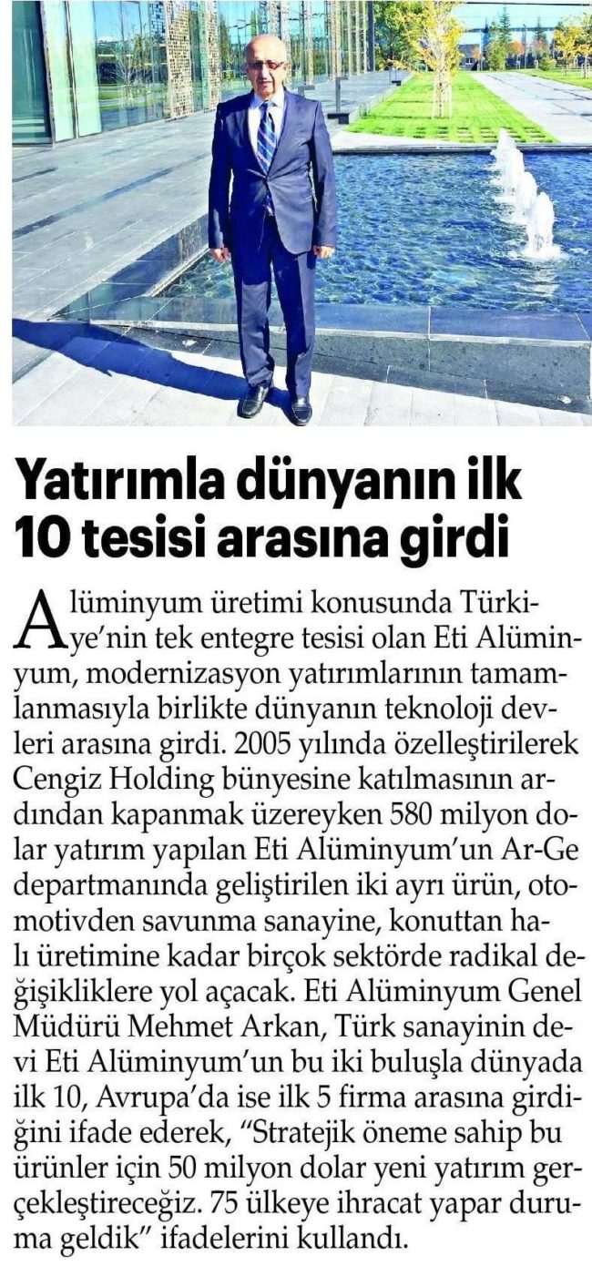 580 MİLYON DOLAR YATIRIMLA DÜNYADA İLK 10’A GİRDİ