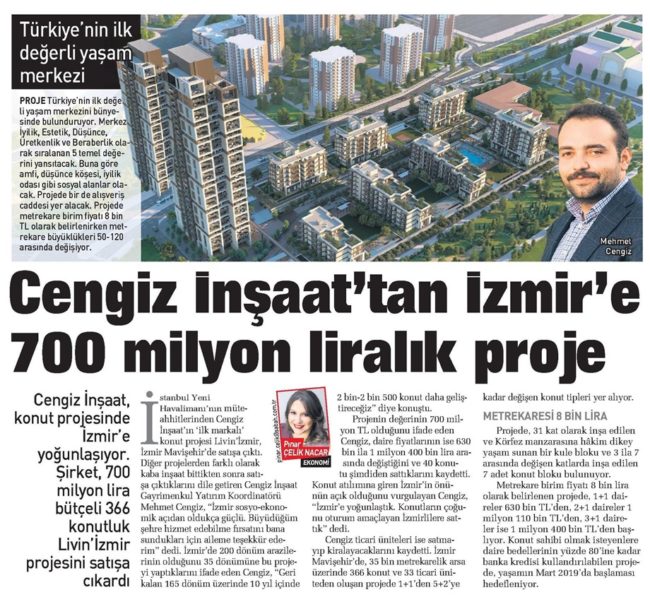 Cengiz İnşaat’tan İzmir’e 700 Milyon Liralık Proje