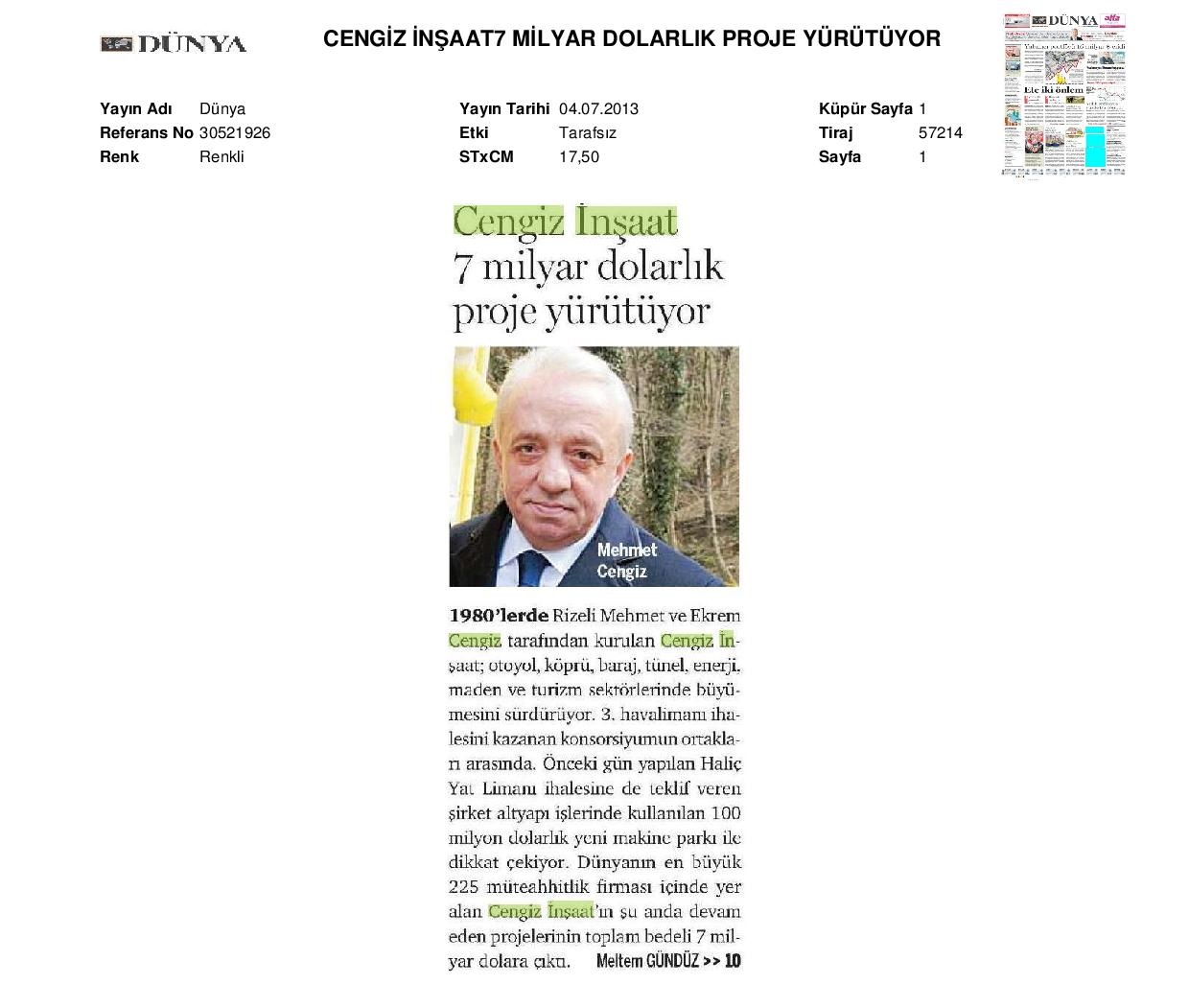 Bir Cengiz Holding kuruluşudur.
