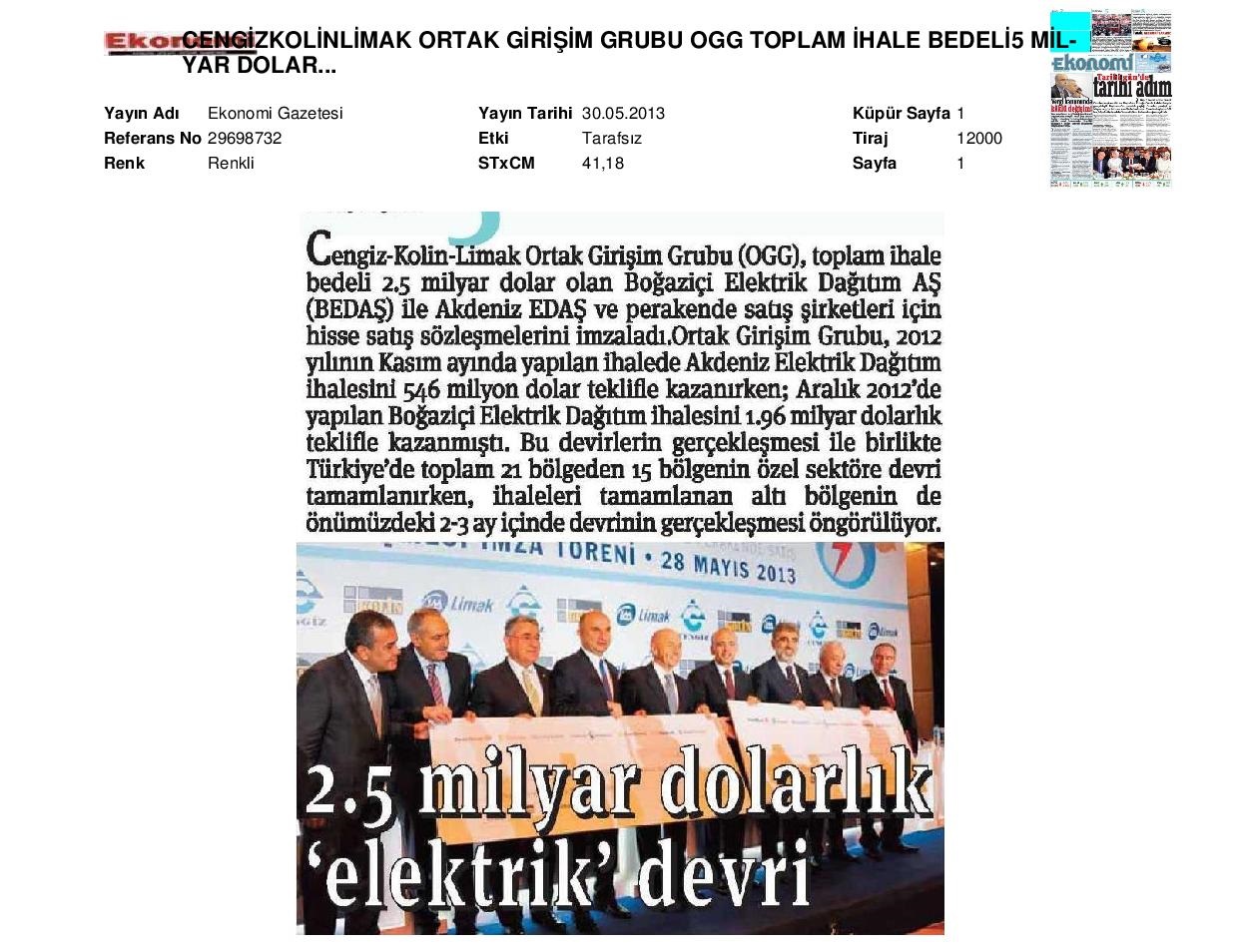 2,5 Milyar Dolarlık Elektrik Devri