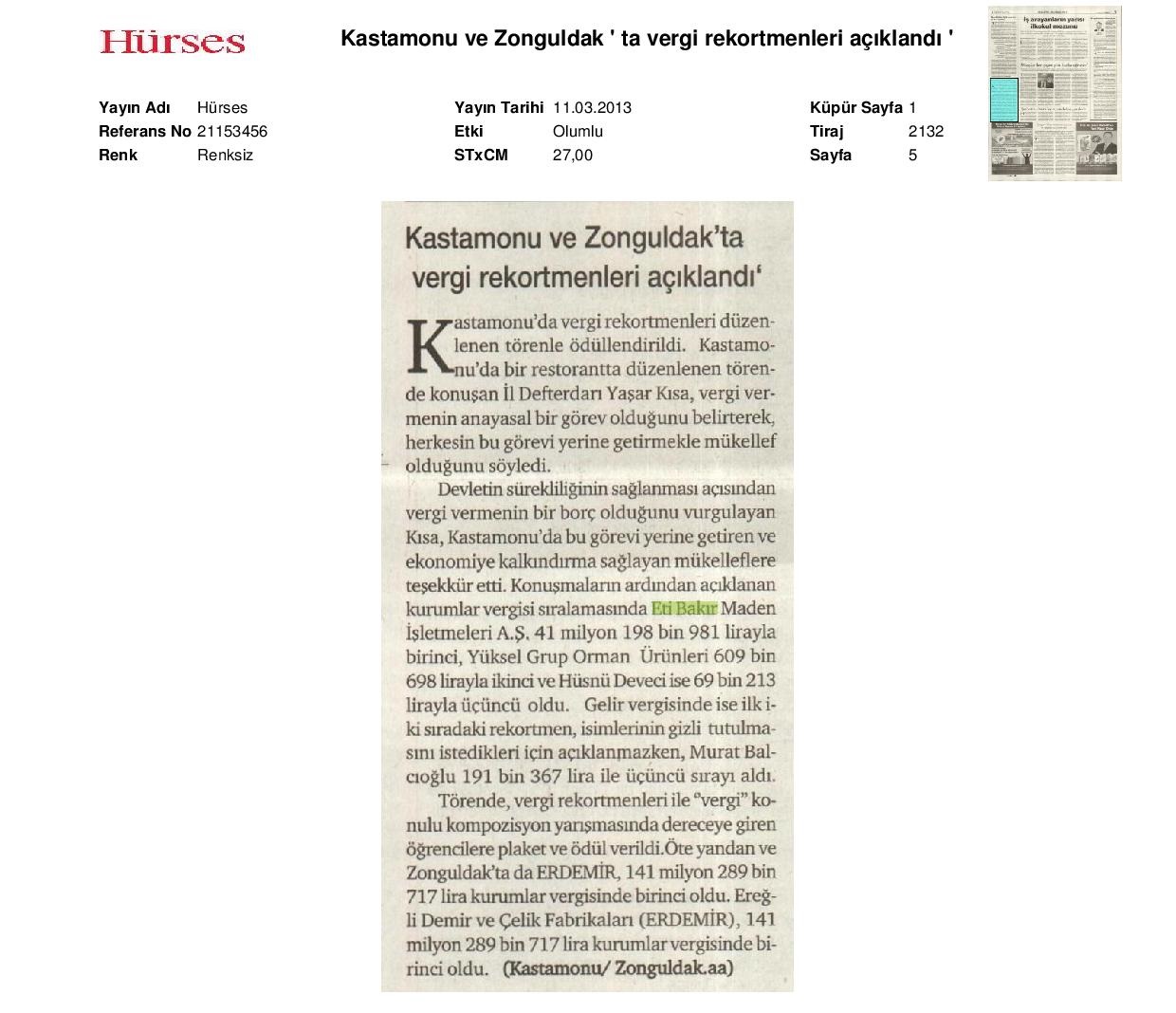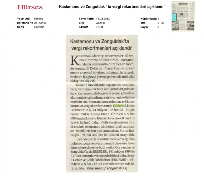 Eti Bakır Vergi Rekortmeni Oldu
